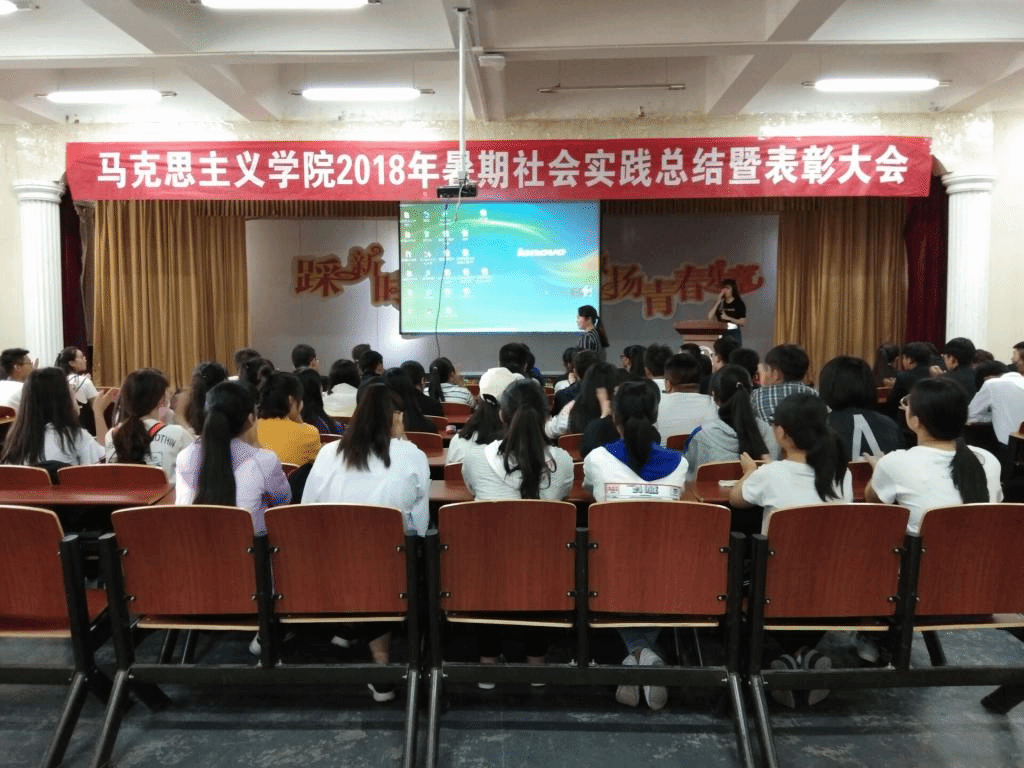 2018年暑期社会实践是以“青春大学习 奋斗新时代”为实践主题,以“专业、就业、创业”为核心,以“控制实践规模、提高实践效果”为原则的暑期社会实践活动。大会中各实践团队队长依次对社会实践成果进行展示,分享实践心得。随后,牛毅琴副教授和顾文兵教授为各队社会实践优秀队员进行颁奖。
