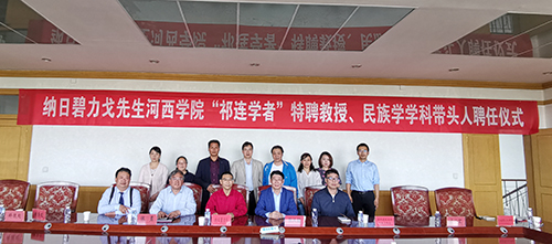 会上,学校聘任教育部教学指导委员会副主任、国家民委民族理论政策重点研究基地复旦大学民族研究中心主任、博士生导师、教育部“长江学者”纳日碧力戈教授为红足—世足球网“祁连学者”特聘教授、民族学学科带头人。校长张汉燚与纳日碧力戈教授签订了工作协议,并为纳日碧力戈教授颁发聘书。