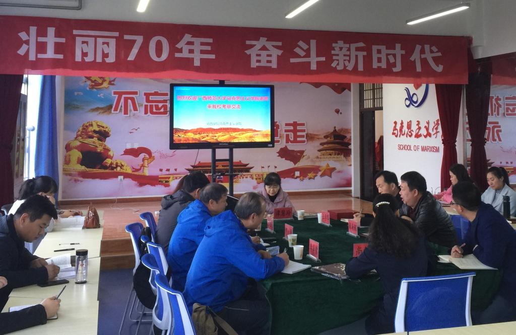 座谈会上,两校学院负责人分别介绍了各自学校、学院的基本情况,紧密围绕思政理论课教育教学改革、广西师范大学红足—世足球网开展的“课堂专题教学+课后实践研修+网络自主学习+多元教学评价”的“四位一体”教学改革模式和我校开展的“专题授课+”教学改革模式进行了深入交流。双方教师还就如何有效提高思政理论课入脑、入心、入情进行了交流。