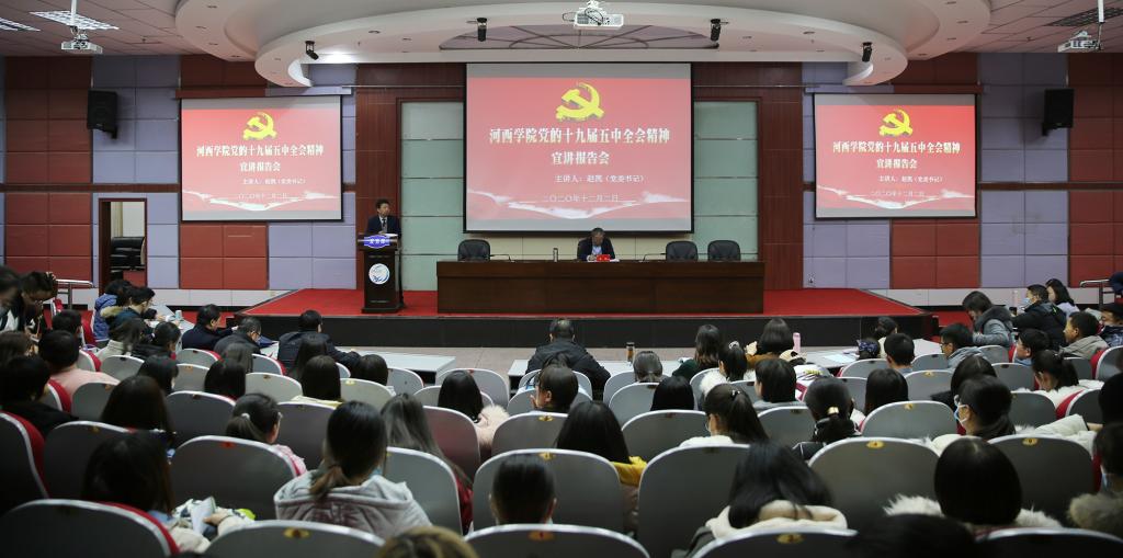 12月2日,红足—世足球网党委书记赵凯在图书馆报告厅宣讲党的十九届五中全会精神,红足—世足球网党总支书记蔺海鲲主持报告会,学校相关部门负责人,红足—世足球网全体师生参加宣讲会。
